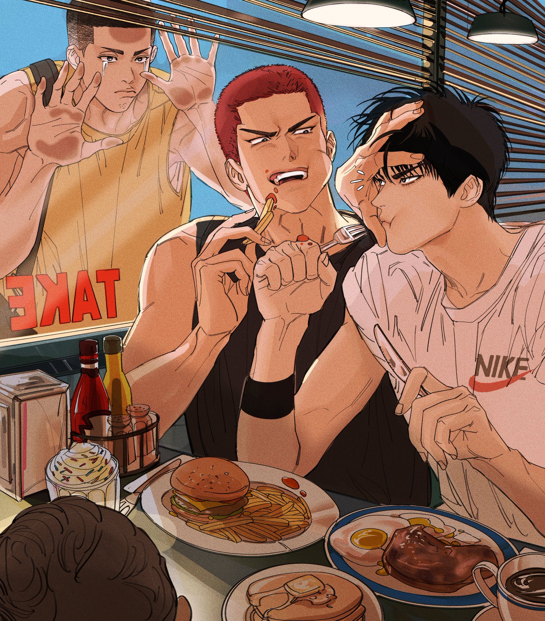 ладно батя. девки сакураги не любят - вот это уже настоящая беда. рыжий, говорят, противный, и гонор как у колхозника. одна харуко его любит, нежнейшая его принцесса. а если прям щас не любит, то потом уж точно втрескается. зря он что ли баскетболить пошёл.